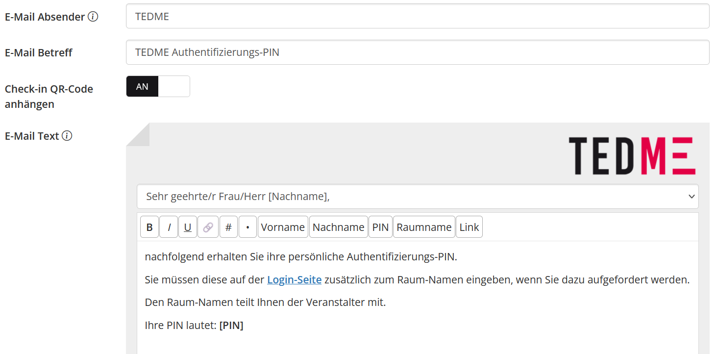 Gestalten Sie die Einladung nach Ihren Wünschen. Inkl. Anrede, Logo, Absendername und QR-Code für den Check-in/Login